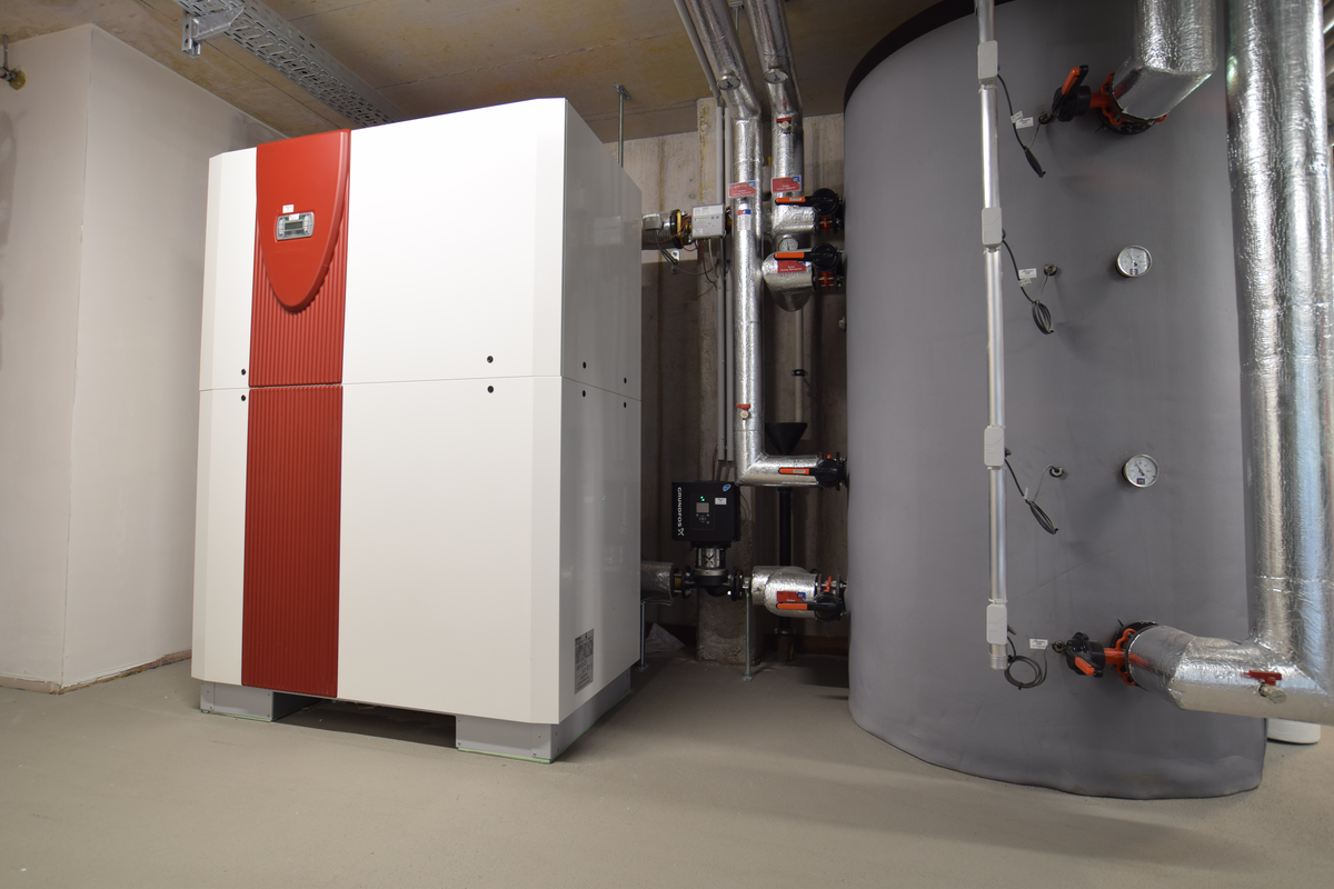 Grundvoraussetzung seitens der Architektur für ein sinnvolles Energiekonzept ist die kompakte Bauweise und die klare Trennung von beheizten und niedrig temperierten Räumen. Beides wurde im neuen Feuerwehrhaus Lustenau perfekt umgesetzt. Förderlich auf die Energiebilanz wirken sich auch die Tageslichtnutzung sowie ein funktionelles Beschattungskonzept durch den Einsatz von Vordächern und Querdurchlüftung aus. bösch unterstützt bei der Heizgrundlastabdeckung, welche über eine Wärmepumpe Sole WP SWP75 und Erdwärme-Tiefensonden erfolgt. Die Wärmepumpe, stellt die Wärmeenergie für die Heizkreise und sofern das Temperaturniveau ausreichend ist, auch für die Lüftungen bereit.