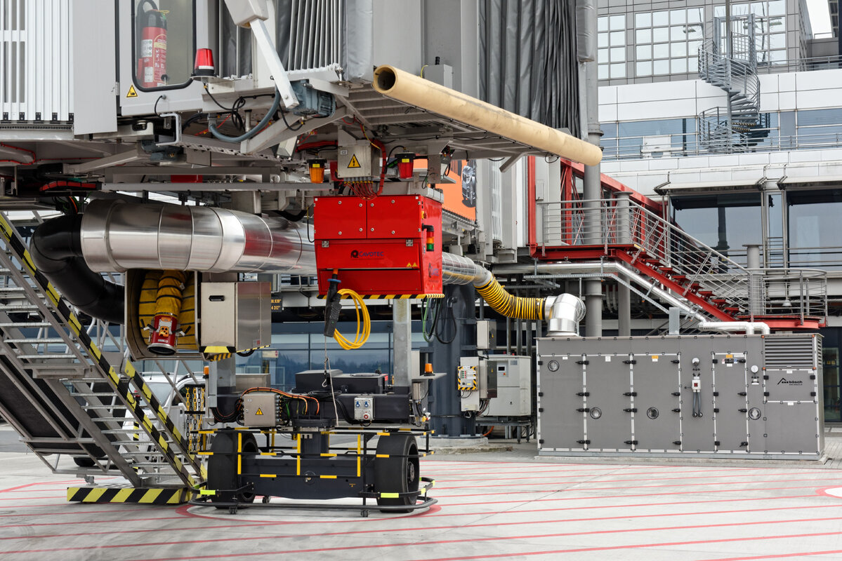 Darunter die an die Fluggastbrücken gekoppelten Belüftungsanlagen – die nun aus dem Hause bösch stammen. Sie versorgen die gelandeten Flugzeuge mit frischer Luft.
