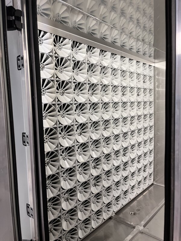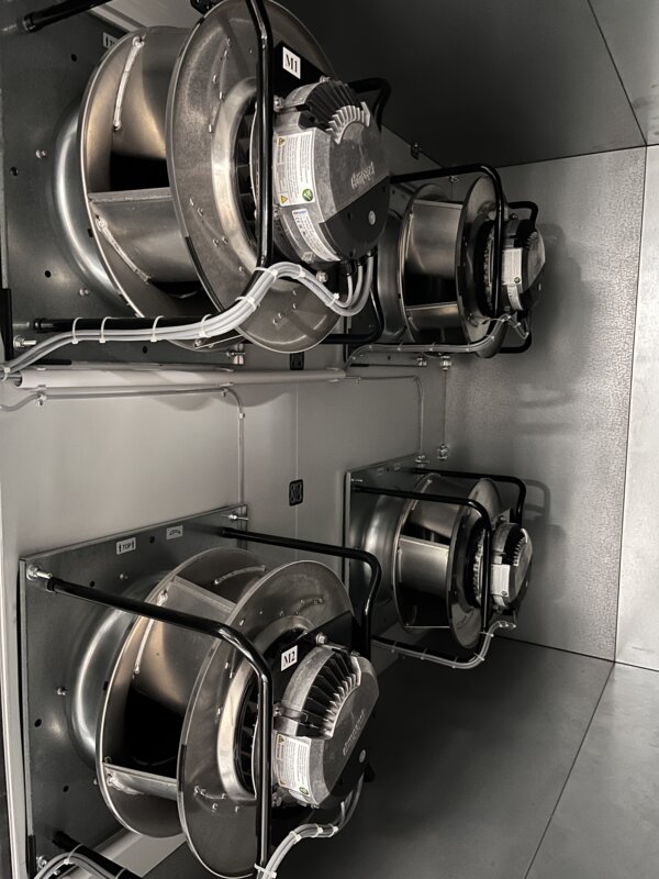 Das zweite Geräte übernimmt die Entlüftung der Tiefgarage und sorgt dort für eine konstante und saubere Luftzirkulation. Während dieses Gerät komplett im Werk gefertigt und geliefert wurde, erfolgte die Anlieferung des großen Gerätes in sogenannten Kuben.