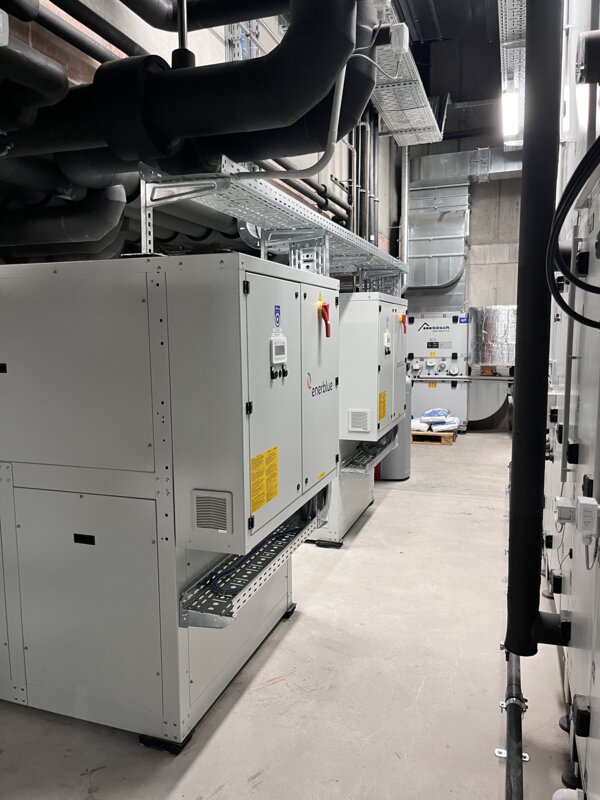 Die reversiblen Hochtemperatur-Wärmepumpen von bösch, mit einer Leistung von je 103 kW, werden mit dem Kältemittel R513A betrieben. Die Geräte zeichnen sich durch ihre hohe Energieeffizienz und geringe Umweltbelastung aus. Das Low-GWP-Kältemittel R513A ist bekannt für seine niedrige Treibhausgasemission und hohe Leistungsfähigkeit, was es zu einer idealen Wahl für nachhaltige Heiz- und Kühlsysteme macht.