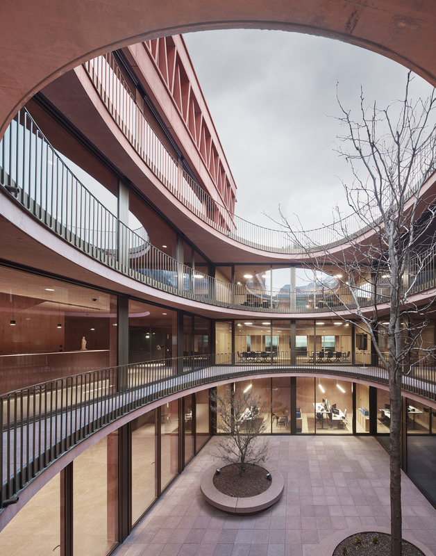 Nach zwei Jahren Bauzeit wurde das von Innauer und Matt geplante Gebäude fertiggestellt. Es vereint Büroflächen, Konferenzräume und eine Tiefgarage unter einem Dach und bietet 140 moderne Arbeitsplätze. Der Einsatz von Rot gefärbtem Beton und Holz verleiht dem Gebäude eine einzigartige Note.
