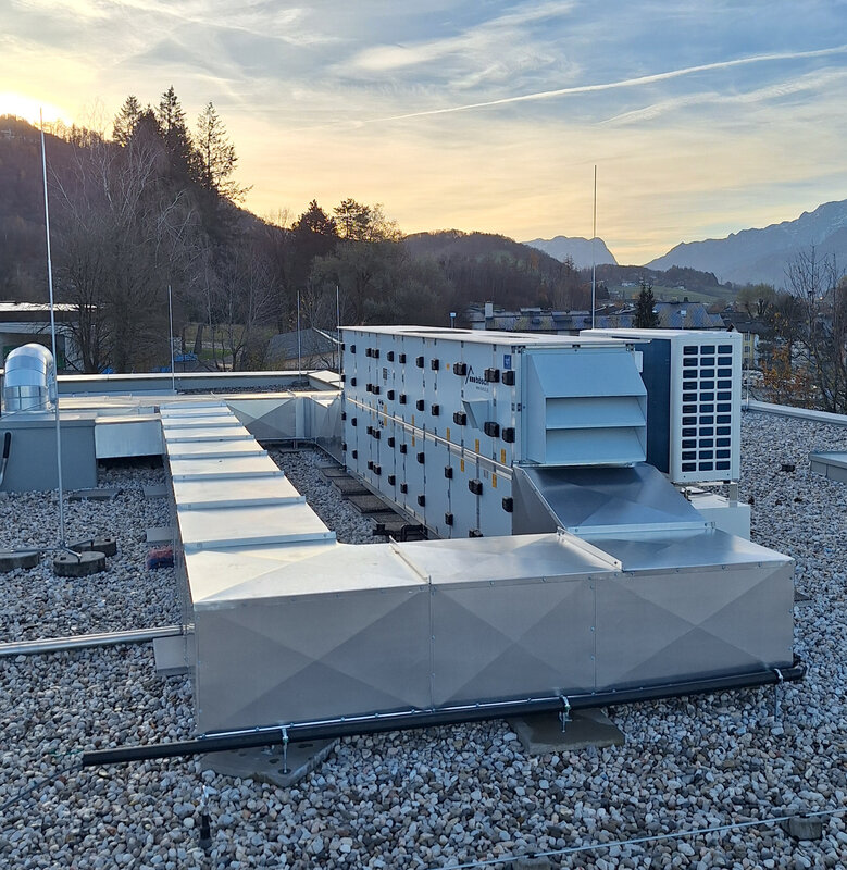 Die Generalplanung des Umbaus übernahm das renommierte Architekturbüro Marius Project ZT GmbH aus Aigen. Das erfahrene Team an Spezialisten legte ein überzeugendes Gebäudekonzept vor und koordinierte die gesamten Bauarbeiten. Zukunftsorientierte Wege beschritt das Team bei der Auswahl der HLK-Technik: Das Gebäude wird mit einer nachhaltigen Lüftungslösung von bösch klimatisiert. Nachhaltig deshalb, weil Wärme und Kälte von einer umweltfreundlichen Luft-Wasser-Wärmepumpe bereitgestellt werden. Die Wärmepumpe verwendet das natürliche Kältemittel Propan, das durch niedrige Treibhausgasemissionen sowie hohe Effizienz überzeugt.