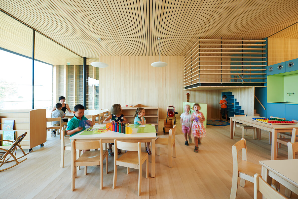 Dort wo sich einst das ehemalige Lustenauer Rettungsheim befand, ist nun ein Spieleparadies für Kinder entstanden. Der Kindergarten Rheindorf war der älteste und zählt heute zu den modernsten Kindergärten in Lustenau. 60 Kinder und 13 Betreuer*innen sind in dem einladenden Gebäude untergebracht. Weiteren Wohlfühlfaktor bietet die Haustechnik von bösch, die aus einer Hand geliefert wurde.