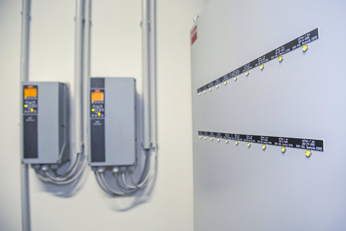 | Gebäudeautomation | DEOS mit Visualisierung OPENweb, mit Integration M-BUS zur Aufschaltung der Wärmemengenzähler bzw. Kältemengenzähler (Hybridzähler), Einzelraumregelung der Büros |