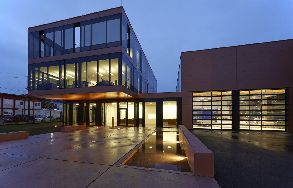 Den Namen „Blue Building“ (besonders nachhaltiges Gebäude) hat sich der Neubau redlich verdient. Die Gebäudetechnik ist so konstruiert, dass sie an Energieeffizienz kaum noch zu toppen ist. Besonderes Augenmerk fällt auf das Löschwasserbecken, welches Teil eines meisterhaften Nachhaltigkeitskonzeptes wird. Das aus Brandschutz-Vorgaben benötigte Wasserbecken wird als Energiequelle für die Wärmepumpe genutzt. Somit ist ein energiesparender Betrieb garantiert.