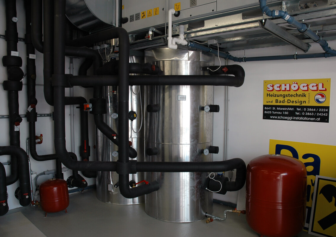 Für ein angenehmes Arbeitsklima im neuen Gebäude der Steirischen Raiffeisenbank sorgen zwei hocheffiziente Luft-/Wasser-Wärmepumpen von bösch. Die LA35TUR+ mit einer Heizleistung von 23,6 kW und einer Kühlleistung von 32 kW versorgt das Gebäude nicht nur mit Wärme und Warmwasser, sondern bei Bedarf über die integrierte Kühldecke auch mit kühleren Temperaturen. An dem im Technikraum montierten Wärmepumpen-Manager mit integrierter Wärmemengenzählung wird die berechnete Wärmemenge für Heizen und Warmwasser angezeigt. Das Geät ist zusätzlich mit einem reversiblen Kältekreis mit Zusatzwärmetauscher für höhere Warmwassertemperaturen (bis 50° C) im Heizbetrieb ausgestattet. Dieser sorgt auch für eine größere Abwärmenutzung im Kühlbetrieb.