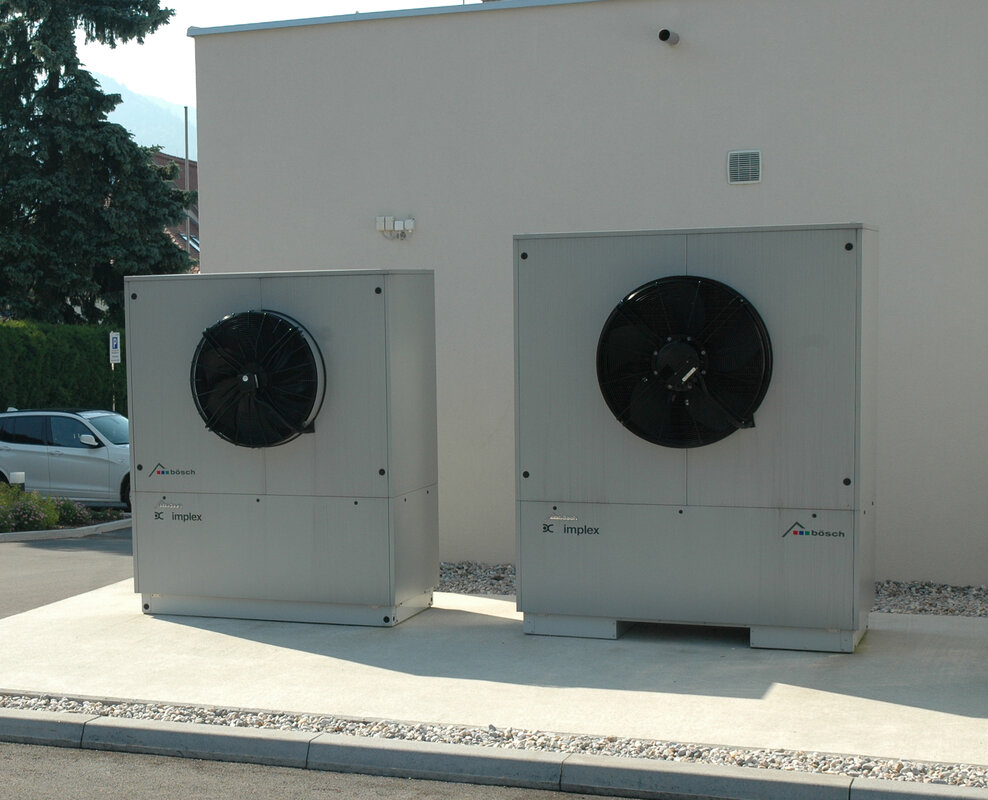 In Kombination mit der zweiten Luft-/Wasser-Wärmepumpe LA17TU macht bösch die Raiffeisenbank unabhängig von fossilen Brennstoffen. Die LA17TU wird als Heizungsergänzung eingesetzt, um den gesamten Heizbedarf des Gebäudes abzudecken. Die beiden Wärmepumpen wurden platzsparend hinter dem Gebäude montiert und einwandfrei in die Umgebung integriert. Im Technikraum der Bank sind zwei Kältespeicher, die Heiz- und Kühlregister sowie zwei Wärmepumpen-Manager untergebracht. Das ausgereifte Regelungskonzept wird über die beiden Wärmepumpen-Manager, EconR (für LA35TUR+) und EconPlus (für LA17TU), gesteuert. Sie sorgen nicht nur für die Überwachung aller Betriebszustände und Funktionen, auch die Funktionsabläufe werden stetig optimiert.